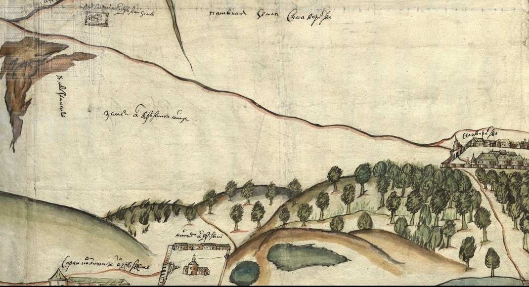 Фрагмент "Чертежа земель от Земляного города до речки Раменки" с изображением Андреевского монастыря.