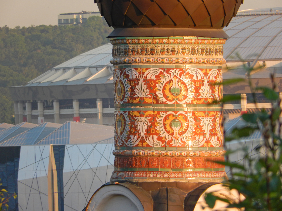 Поливные изразцы на барабане главки церкви Андрея Стратилата
