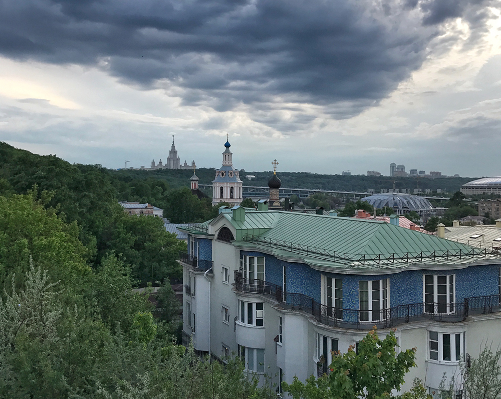 Вид на Андреевский монастырь, МГУ и ЖК Green Hills