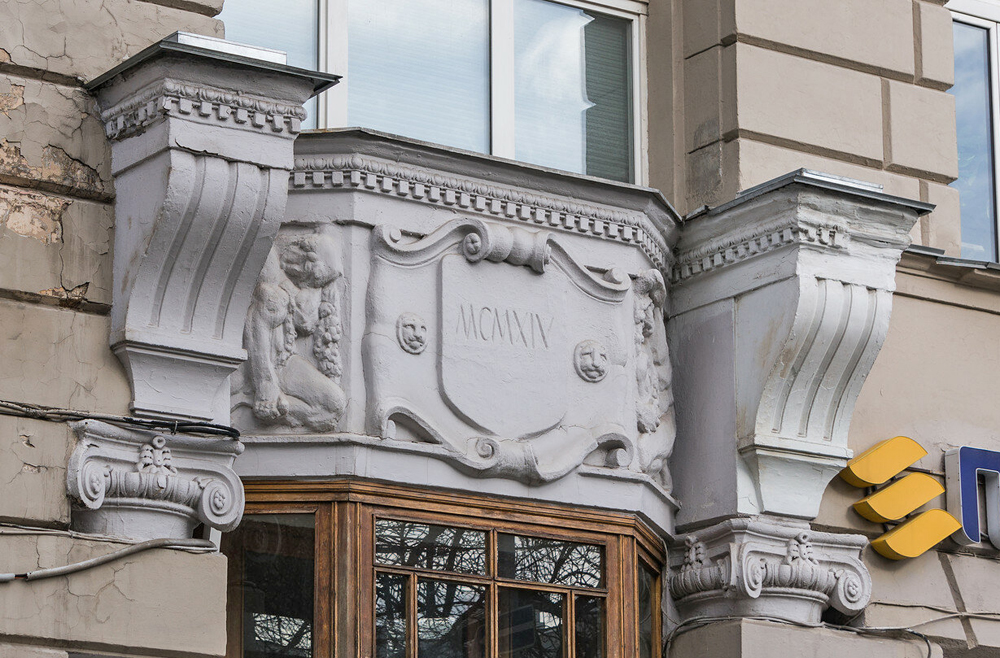 Доходный дом И.М. Коровина. Архитектурные элементы над входом.