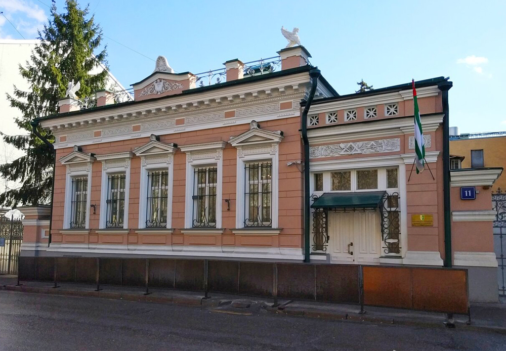 Пройдемся направо по Гагаринскому переулку. На противоположной его стороне видны два миниатюрных особнячка. Тот, что под № 11 — дом Н. Г Фалеева. Перестроен из более старого здания в 1895 году, архитектор — сам владелец особняка. Кажется, дом собрался на архитектурный маскарад — столько здесь архитектурных побрякушек. По углам парапета сидят на крыше совсем миниатюрные даже для такого небольшого фасада крылатые гипсовые грифоны и задорно глядят в обе стороны улицы.