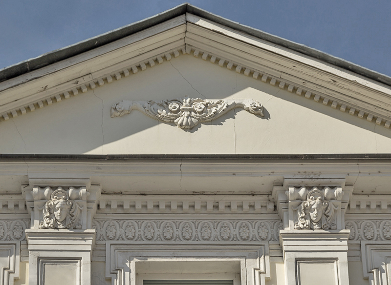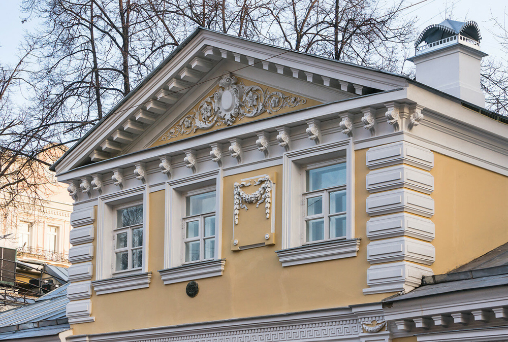 Герб на фронтоне усадьбы Хрущевых - Селезневых. Фасад по Пречистенке.