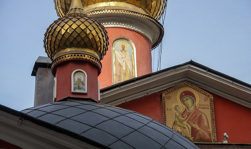 Храм апостола Филиппа. Малая главка и иконы на фасаде.