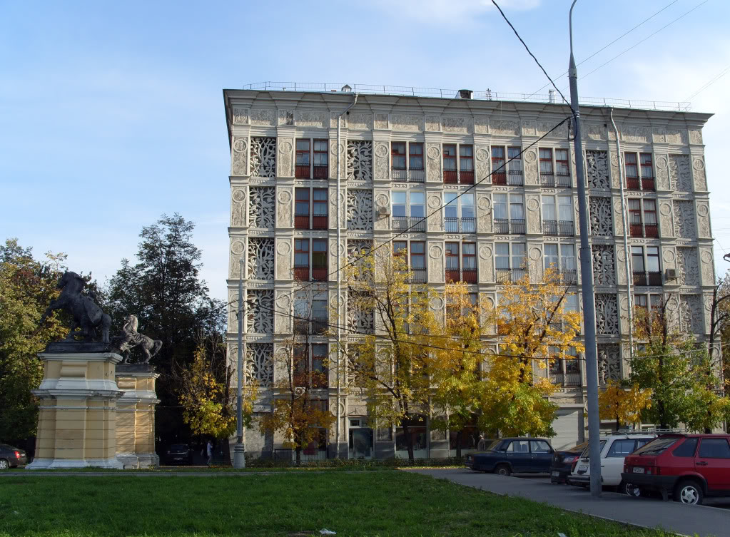 Здание в стиле венского барокко построено в 1914-1916 годах по проекту А. Измирова при участии братьев Весниных. В 1930-х годах здесь располагался гараж Москоммунхоза, ныне здание отдано под перестройку для театра балета Касаткиной-Василёва.