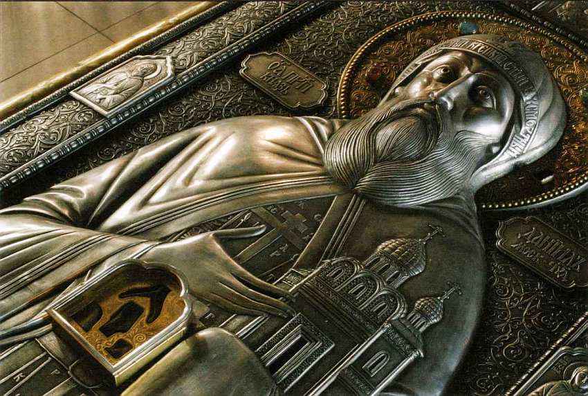 Металлическая рака с мощами святого князя Даниила, обретенными в 1652 году. Располагается в храме Святых Отцов Семи Вселенских Соборов в Даниловском монастыре.