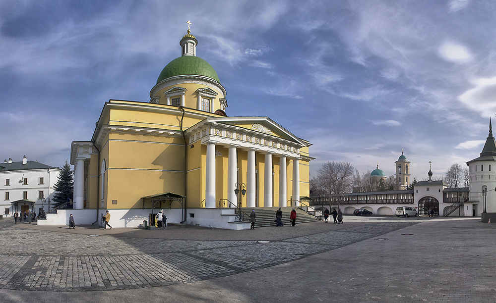 Самое же любопытное и особенное сооружение обители — это собор Святых Отцов Семи Вселенских Соборов, построенный по указу Синода от 1729 года вместо вконец обветшавшего в царствование Петра I несостоявшегося «собора всем соборам» Ивана Грозного.