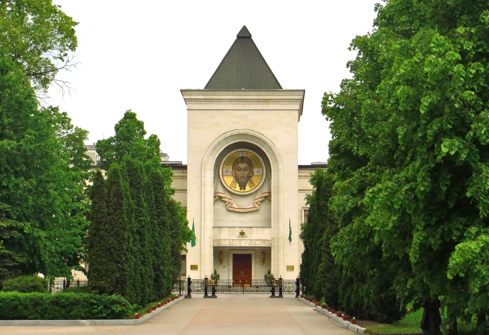 Церковь Всех Святых, в земле Российской просиявших. Домовый храм, расположенный в центре Патриаршей резиденции в Даниловском монастыре и освященный в 1988 году.