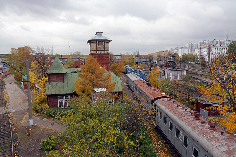 Вообще история водоснабжения станции «Подмосковная» очень интересна. Здесь поблизости нет ни озер, ни рек, а воды для обслуживания требовалось много, поэтому пробурили две артезианских скважины, а чтобы поднимать воду из-под земли на поверхность и подавать ее в башню, установили дизельный насос. И это в 1901 году!