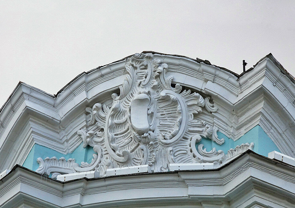 Дом-комод на Покровке. Рокайльный картуш в оформлении углового фронтона.