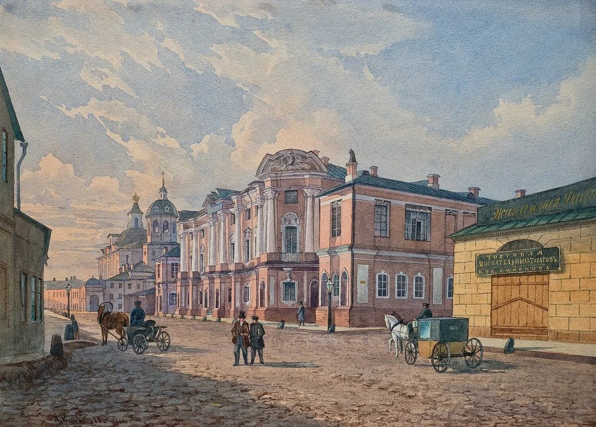 Дворец Апраксиных-Трубецких у Покровских ворот. Акварельная работа художника А. Кондырева. 1866 год.