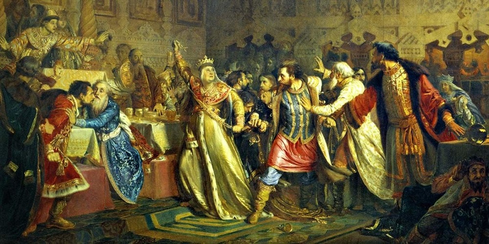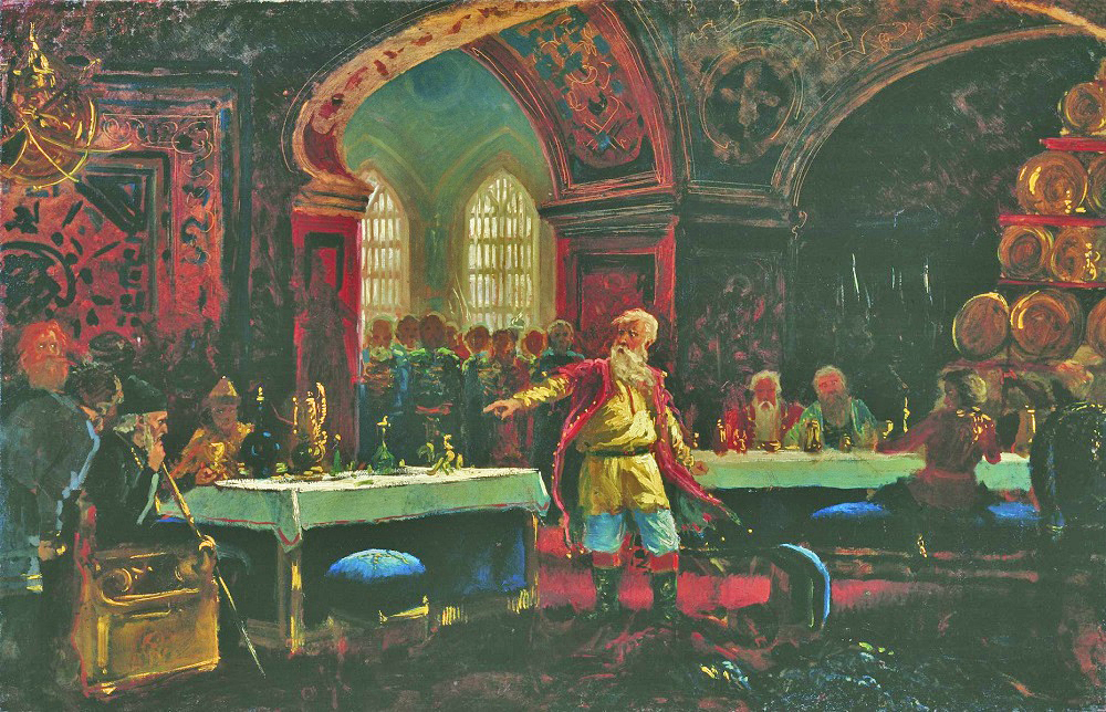 Князь Репнин на пиру у Ивана Грозного. Картина К. Е. Маковского, 1880-е годы.