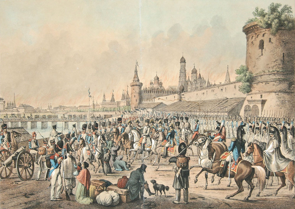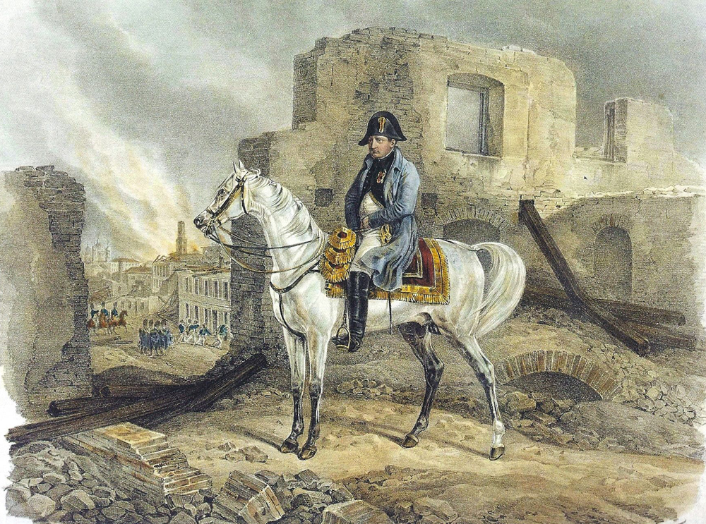 Литография А. Адама "Вид в Москве 22(10) сентября 1812 года. Наполеон в горящей Москве".