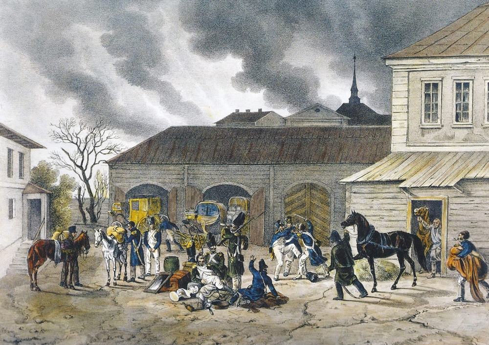 Значительно интереснее в этом смысле серия Хр. Фабр дю Фора. В отличие от Адама он находился на военной службе и в должности младшего артиллерийского офицера отдельного вюртембергского дивизиона, входившего в корпус маршала Нея, принимал участие в русском походе с первого до последнего дня. В 1830-х годах его рисунки были налитографированы в Штутгарте рядом известных мастеров.