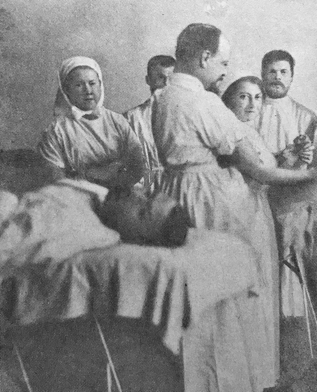 Хирург Иверской общины А.Н. Кулаков во время операции. Винница. Фотография 1915 года.