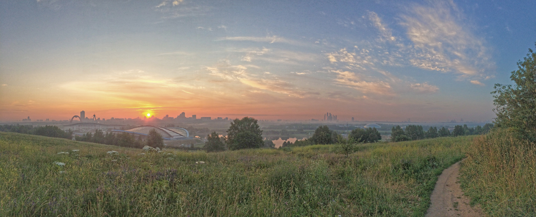 Крылатские холмы — уникальное место в Москве. Они прославились и своей историей, и природой, и архитектурными шедеврами, и спортивными объектами. Отсюда в часы рассвета открывается лучший вид на Москва-сити и окружающие столичные просторы. С этой потрясающей картиной может поспорить разве что вид со смотровой площадки Воробьевых гор. В туманной дымке просматривается и местная церковная жемчужина — стоящий на одном из холмов храм Рождества Богородицы. Ну а чуть дальше него, в перспективе, виднеется современное архитектурное чудо — красная арка Живописного моста через Москву-реку с подвешенной в ней черной бусиной, похожей на пойманную в паутину летающую тарелку. По этим местам нам сегодня и предстоит прогуляться, чтобы насладиться шикарными видами, соприкоснуться с природой и познакомиться с местными легендами и историей.