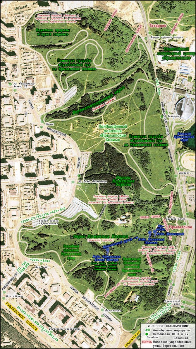 Схема ландшафтного заказника "Крылатские холмы".