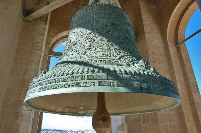 Вознесенский монастырь на Елеонской горе в Иерусалиме. На среднем ярусе колокольни находится колокол, отлитый мастером Ксенофортом Веревкиным на заводе П.Н. Финляндского в 1883 году. Этот колокол отлит по заказу и на средства соликамского промышленника А.В. Рязанцева и подарен им монастырю. Фотография 2008 года.