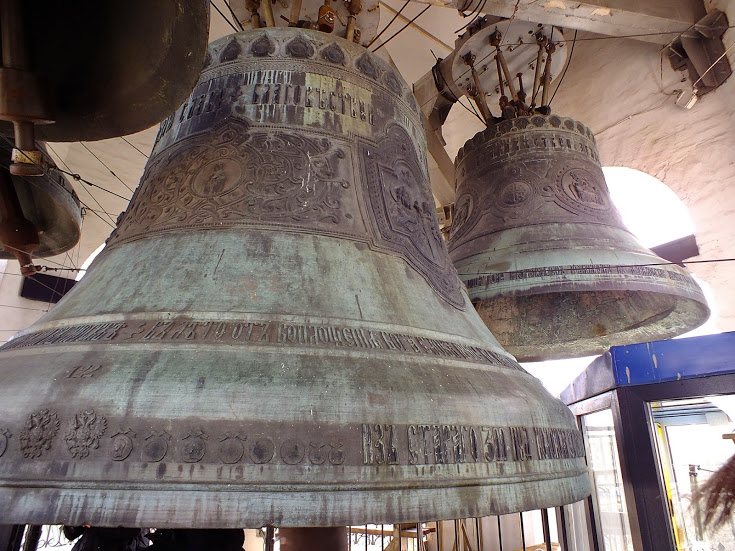 Колокола завода П.Н. Финляндского на звоннице Свято-Данилова монастыря в Москве. В период гонений на церковь чудом избежали переплавки: были выкуплены у всесоюзного объединения "Антиквариат" американским бизнесменом Чарльзом Крейном при содействии ученого и археолога Томаса Уиттемора и вывезены в Америку, где 17 из них были помещены на звоннице Lowell House Гарвардского университета, а 18-ый передан в Harvard Business School. Лишь в 2008 году, после многолетних переговоров, столь же чудесным образом колокола удалось вернуть на прежнее место в Россию - в обмен на точные копии, отлитые и отправленные америкаской стороне. Photo by ein_arzt / livejournal.com. 2015 год.