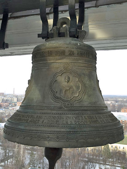На восьмом колоколе, весившем 28 пудов и украшенном изображениями Святых апостола Петра, Дмитрия Ростовского и князя Вячеслава, были запечатлены слова: "Разумейте, языцы, и покоряйтесь, яко с нами Бог" (прокимен на службе Великого повечерия).