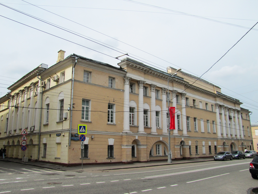 До революции в усадьбе располагалась знаменитая женская гимназия Софьи Александровны Арсеньевой. В это же время в усадьбе Охотниковых на Пречистенке, 32 размещалась не менее знаменитая мужская гимназия Льва Ивановича Поливанова. Оба учебных заведения были уважаемы и популярны, и если родители отдавали сыновей в гимназию Поливанова, то дочери почти всегда учились у Арсеньевой, и наоборот.