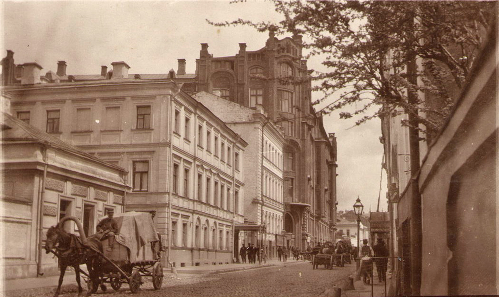 Большой Кисельный переулок. Высокое темное здание - дом, в котором располагалось Московское немецкое общество. Фотография 1904-1917 гг