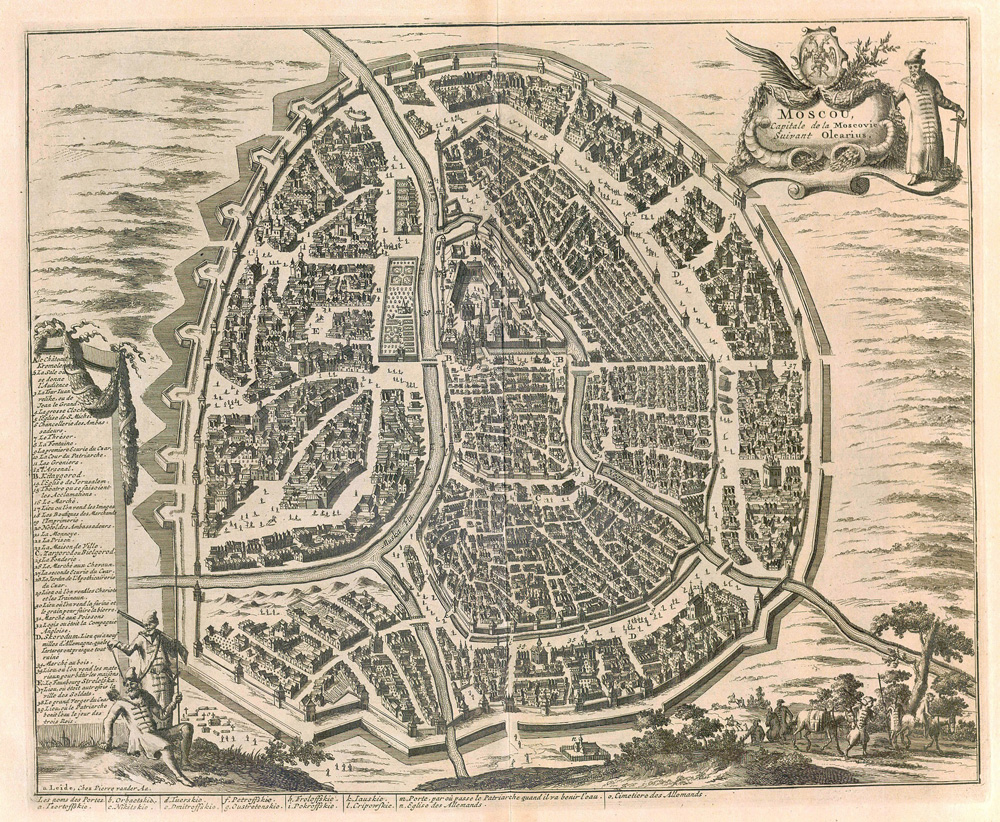 План Москвы А. Олеария. 1634 год Стрелецкая слобода (в прошлом - иноземное поселение Налейки) - слева от Кремля, на другой стороне Москва-реки.