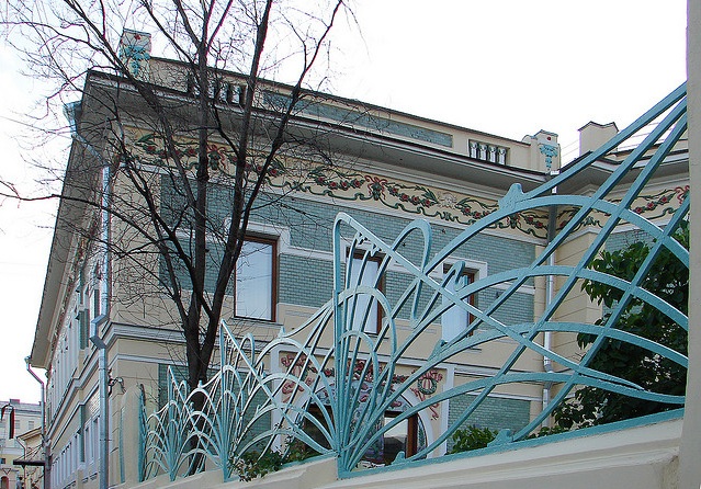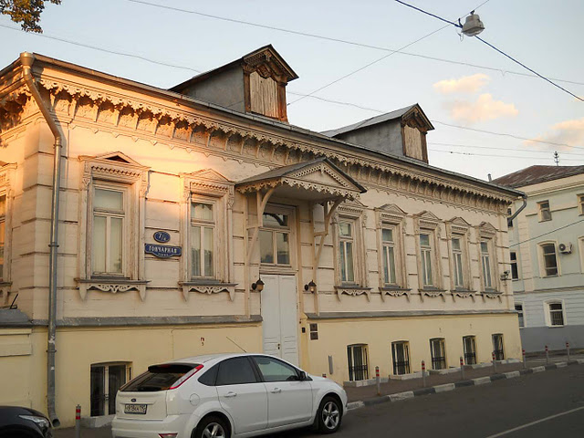 Неподалеку от Афонского подворья, на той же Гончарной улице, дом 7, находится совершенно необычное для этих мест здание – небольшой деревянный дом с великолепной резьбой.