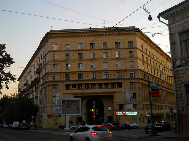 Дом 2/16 по Яузскому бульвару – знаменитый дом со статуями, известен он в основном благодаря фильму «Покровские ворота», некоторые сцены которого снимались как раз на его фоне, хотя эту арку со статуями можно увидеть во многих отечественных фильмах, например, «Холодное лето 53-го» и «Розыгрыш».