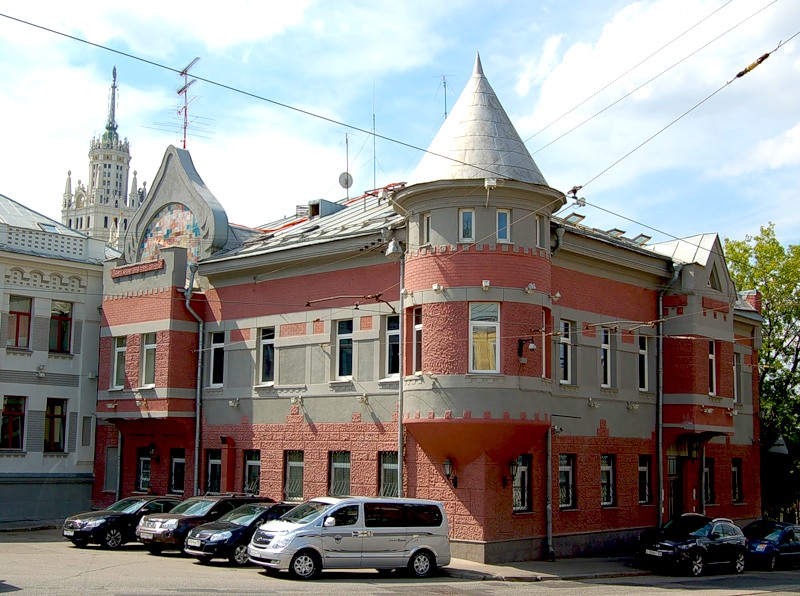 Коммерческие дела Филипповых шли весьма неплохо, и с расширением дела купеческая семья увеличивала и свои домовладения. В 1868 году им принадлежал уже весь квартал со строениями по Яузской улице и Яузскому бульвару, исключение составлял лишь угловой дом с колоннами, который Смирнов построил для своего сына – профессора права Московского университета. Но в 1900 году Филипповы купили и его тоже. К началу ХХ века «Филиппов и К°» - уже крупный торговый дом. Почетное семейство решает построить для своего личного проживания новый модный особняк, и нанимает для этого архитектора А.В. Красильникова. Он в 1902-1906 годах строит для них особняк в романтическом стиле, похожий на рыцарский замок. Дом выделяется пседвоготической башенкой и большим кокошником, украшенным абрамцевской майоликой с люстром – металлическим отливом. После революции дом был отдан под коммунальные квартиры, а с конца 1970-х в здании был организован сначала пивной бар, затем кафе, а позже – видеосалон при ВПТО «Видеофильм», второй по значимости после арбатского. Сегодня, после реставрации, особняк отдан под различные организации.