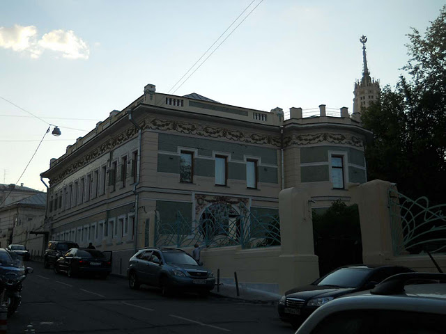На противоположной стороне Яузского бульвара стоит здание городской усадьбы купцов Боковых.