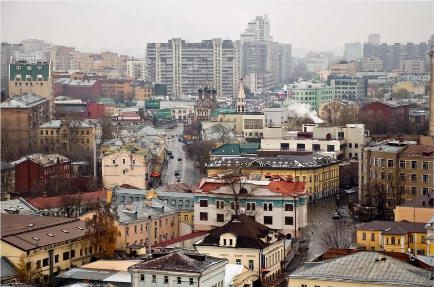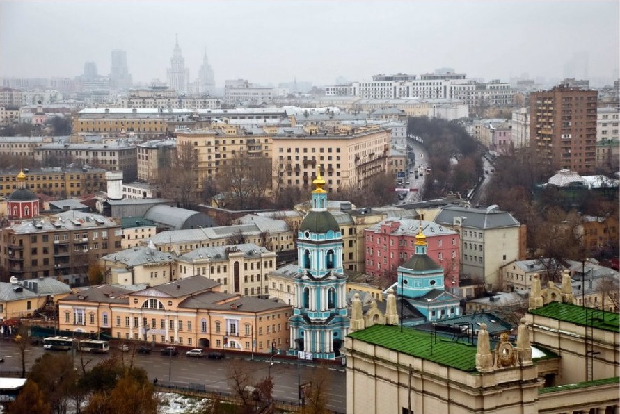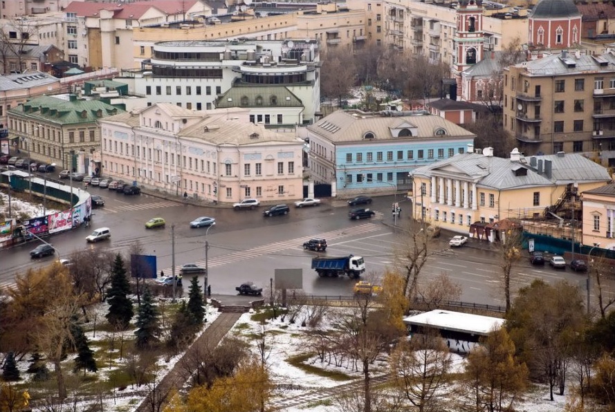 Слева Верхняя Радищевская улица, церковь Николая Чудотворца на Болвановке по центру, за ней станция метро Таганская.