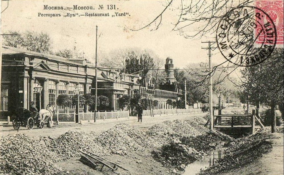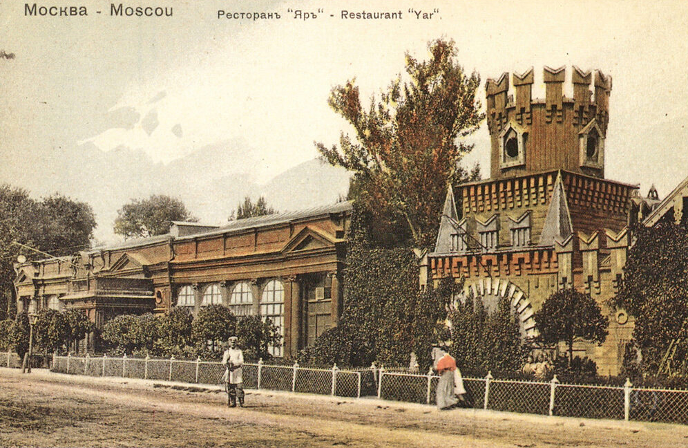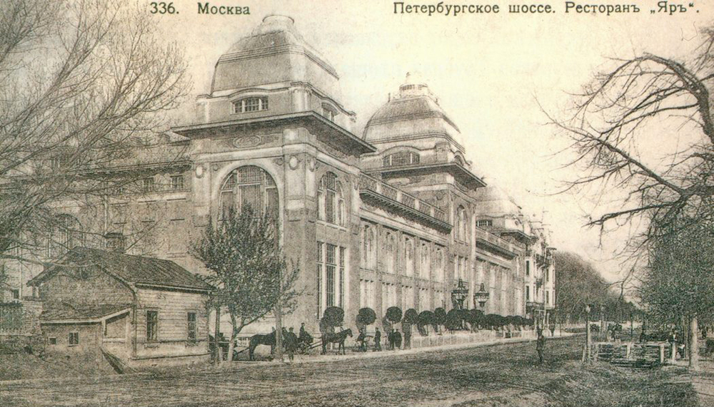 По вечерам по нынешнему Ленинградскому проспекту мчались во весь опор тройки. Куда? Это было ясно всем. К "Яру". Состоятельная публика прокучивала в нем уйму денег. "Яр" (тюркское слово, означающее "высокий, крутой берег реки или моря") славился знаменитым соколовским хором и отменными блюдами.