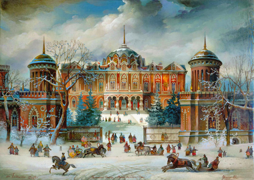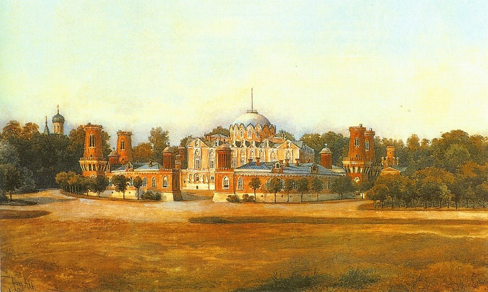 "Петровский дворец. Середина XIX века". Художник Михаил Шелухин.