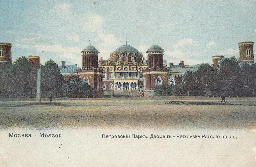 Москва. Петровский парк и Петровский дворец. Почтовая карточка издательства П. Фон-Гингерсона. 1900-1917 гг.