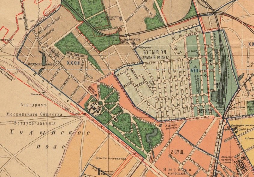 Петровский парк и его окрестности на карте издания Суворина 1915 года.