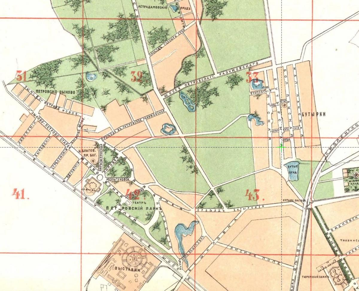 Петровский парк и его окрестности на плане города Москвы 1881 года.