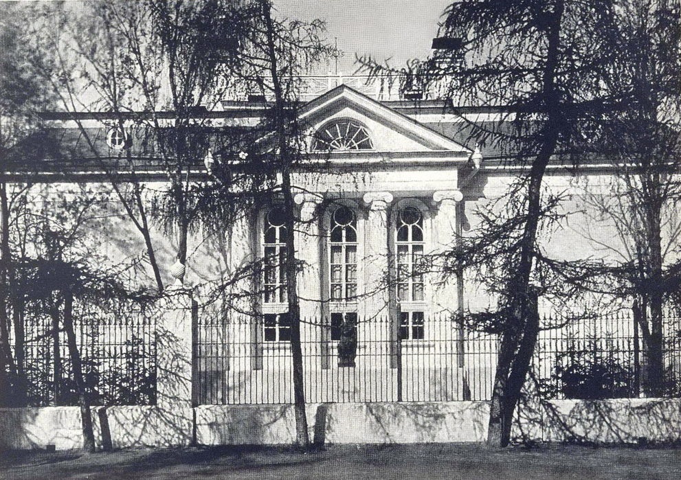 Иду по Нарышкинской аллее, сплошь усаженной лиственницами. За металлической оградой с позолоченными стрелами-наконечниками вижу уютное белое здание с легкими колоннами. Здесь когда-то находился ресторан с изысканным названием "Черный лебедь". Еще до недавнего времени на воротах висела медная почерневшая дощечка с надписью "Черный лебедь".