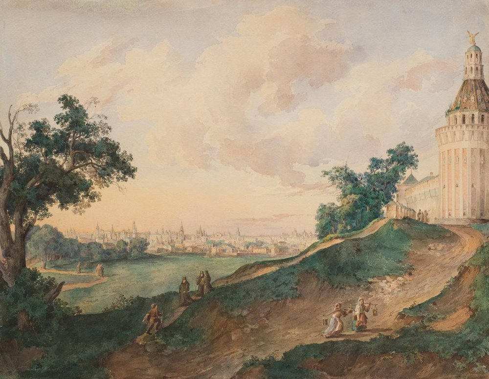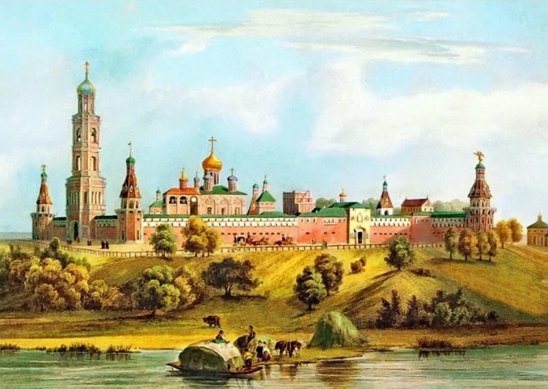Вид московского Симонова монастыря. Акварель Войцеха Вейса. Середина XIX века .