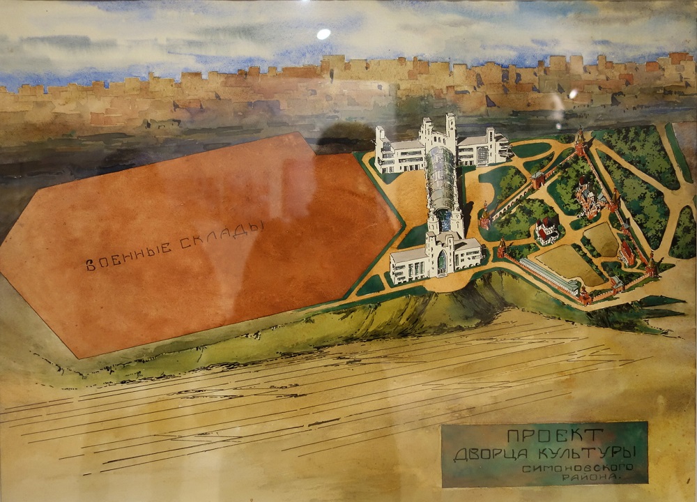 Проект Дворца культуры ЗИЛ, предложенный П. Д. Барановским. На нем архитектор оставляет нетронутым монастырь и располагает Дворец культуры рядом с ним. Проект был отвергнут, а ДК построили на монастырской территории, снеся часть построек обители.