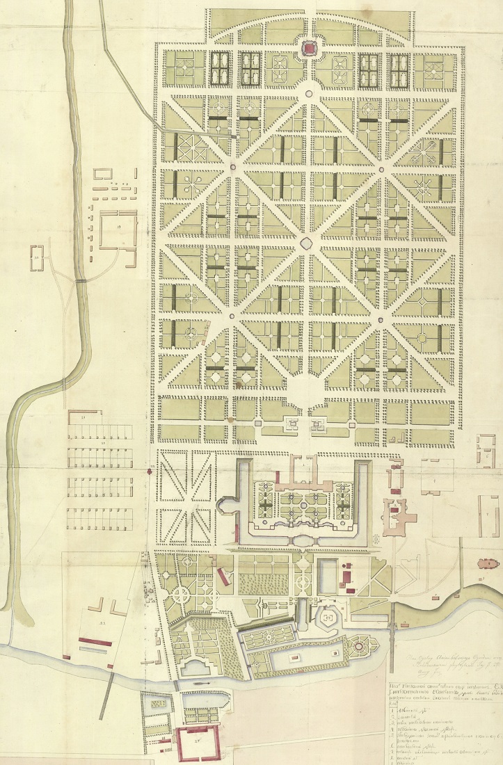 Генеральный план ансамбля и парка Анненгоф в Москве по стостоянию на 1742 год.