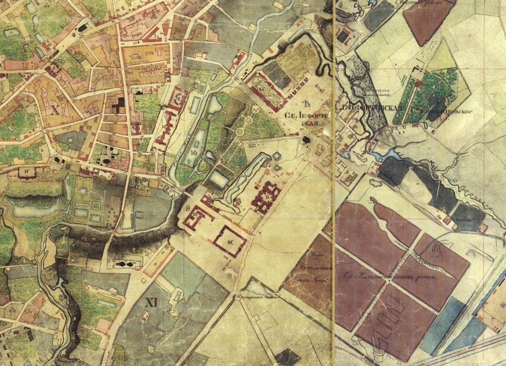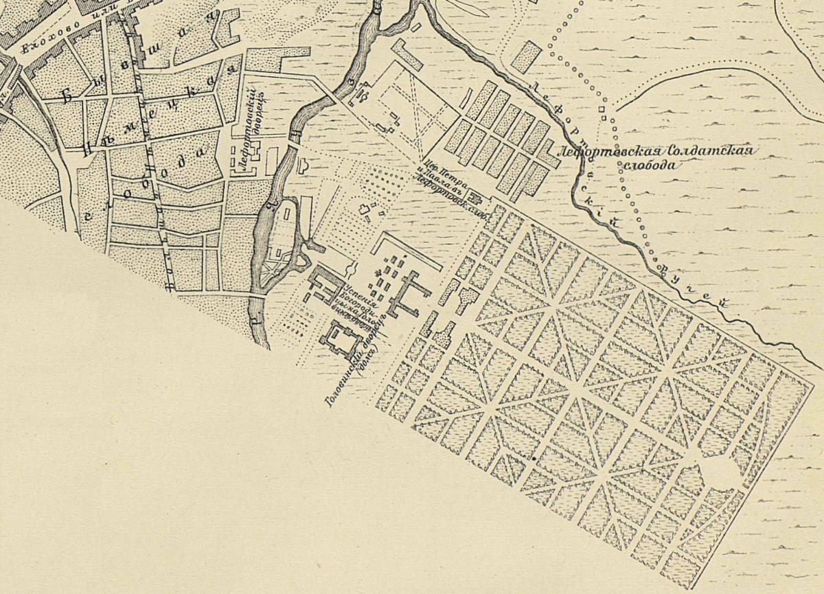 Лефортовская солдатская слобода на плане Преображенского и окружающих мест 1739 года.
