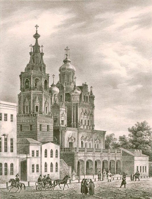 Церковь Успения на Покровке. Литография О. Кадоля. Начало 1830-х гг.
