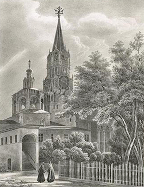 Вид Вознесенского монастыря (с церковью Михаила Малеина). Литография О. Кадоля. Начало 1830-х гг.