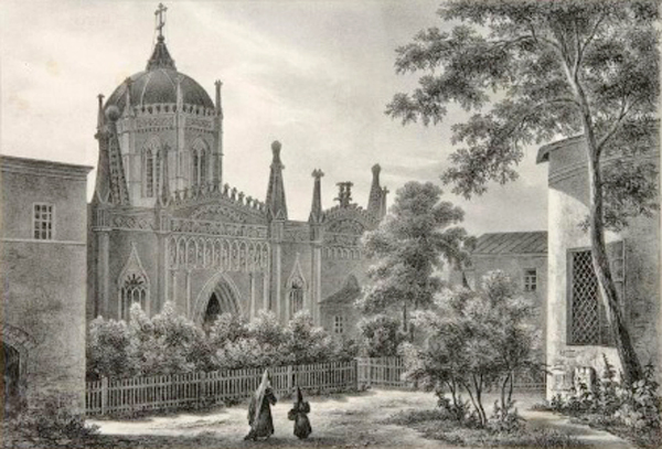 Вознесенский монастырь. Вид церкви Святой Екатерины. Литография О. Кадоля. Мастерская Г. Энгельмана и братьев Тьерри. 1830 год.