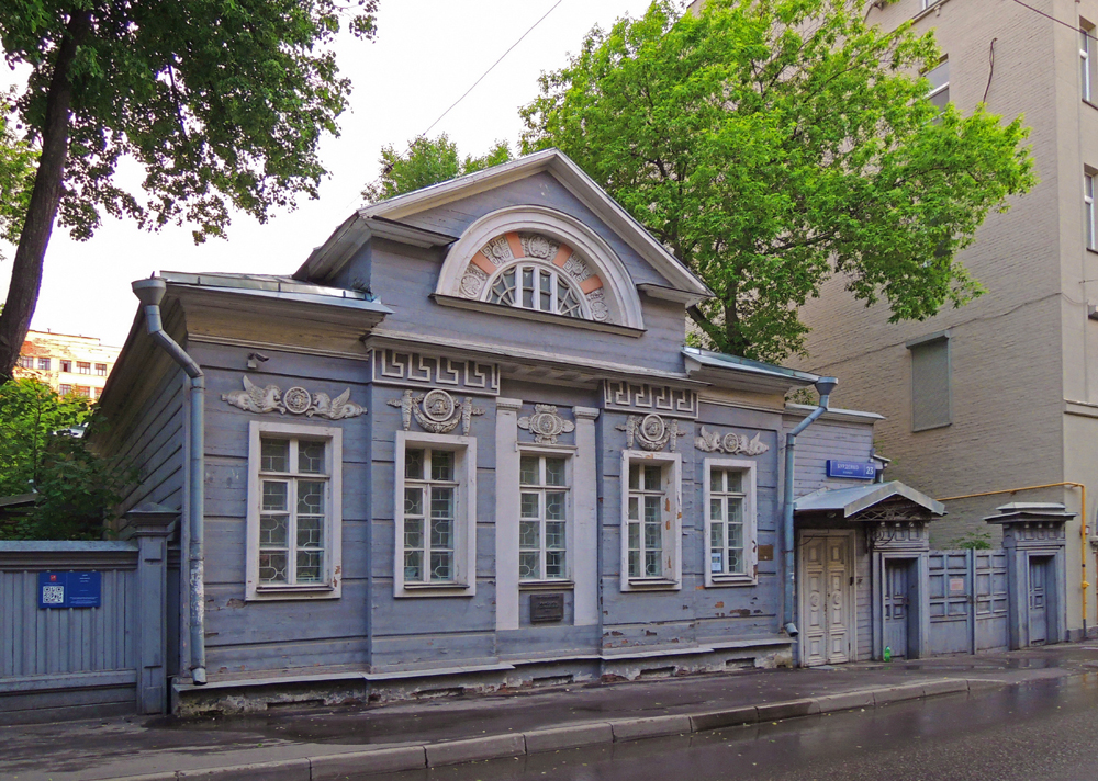 Многие улицы и переулки в районе между Садовым кольцом, Москвой-рекой и Девичьим полем давно переименованы, но исторический архитектурный фон местами сохранился и представляет немалый интерес для человека, знакомящегося с архитектурой старой Москвы. Тут еще попадаются особняки времен допожарной Москвы, есть здания, свидетельствующие о бурном восстановлении города после наполеоновского нашествия, хотя, пожалуй, лишь единицы дошли до нас в первозданном виде. Едва ли не с каждым из таких домов связана какая-нибудь легенда, увлекательная история, а то и тайна. Много повидали они на своем веку... Об одном из них мы и собираемся рассказать. Бывший Долгий переулок, ныне улица Бурденко. Здесь, в тихом уголке Москвы, стоит под № 23 небольшой одноэтажный особняк, затерянный среди современных многоэтажных зданий. Деревянный дом этот построен в начале XIX века и соединил в своем облике типичные черты дворянских особняков того времени. Мы говорим — «дом», но, в сущности, это домик — так он мал. Разросшиеся старые деревья совсем закрыли его своими ветвями, и, проезжая на автомобиле, дома можно не заметить.