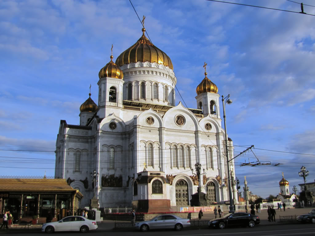 Экскурсия начинается от ст. м. Кропоткинская, от храма Христа Спасителя. Храм был воздвигнут по иницативе Александра I в благодарность Богу за спасение России от наполеоновского нашествия. Изначально разместить сооружение было решено на Воробьевых Горах, стройка даже началась, шла первое время довольно интенсивными темпами, но вскоре строительство заглохло из-за трудностей, возникших с грунтом, он впоследствии был признан непригодным для возведения на нем храма. Новое место для храма, на Волхонке, было выбрано уже Николаем I. Примечательно, что эта местность ранее называлалась Чертольем. Свое название она получила по ручью Черторый, который вытекал из Козьего болота, протекал вдоль нынешнего Бульварного кольца и впадал в Москву-реку. Сильно наполняясь водой весной и летом во время ливней, ручей промыл глубокий овраг. В народных говорах такой овраг называли чертороем. Вот и стали местность называть Черторьем, а затем Чертольем. Превращение «р» в «л» не затемнило первоначального значения слова: мол, чёрт рыл этот овраг. Перед постройкой храма находившиеся на этом месте постройки были куплены и снесены, был снесён и располагавшийся там Алексеевский женский монастырь, его принудительно перевели в Красное село. Сохранилось предание, что игуменья монастыря, недовольная переездом, прокляла это место и предрекла, что ничто не устоит на нём долго, что вообщем-то и случилось впоследствии - храм Христа Спасителя был разрушен большевиками в 1931 году для постройки на его месте Дворца Советов - грандиозного административного здания, места празднеств, съездов и т.д.