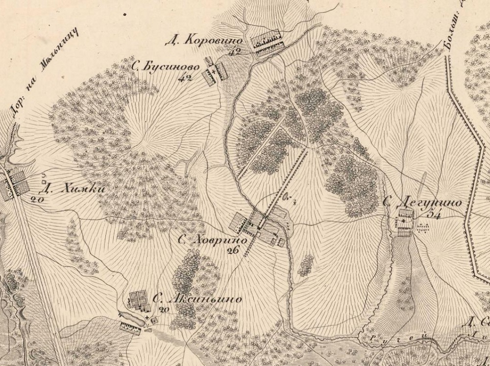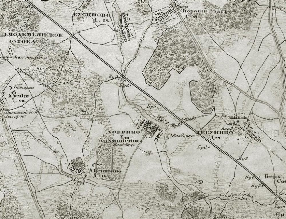 Село Ховрино на карте окружностей Москвы 1823 года.