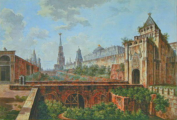 Никольская башня Кремля и Алевизов ров. 1800-1802 годы. Худ. Ф.Я. Алексеев