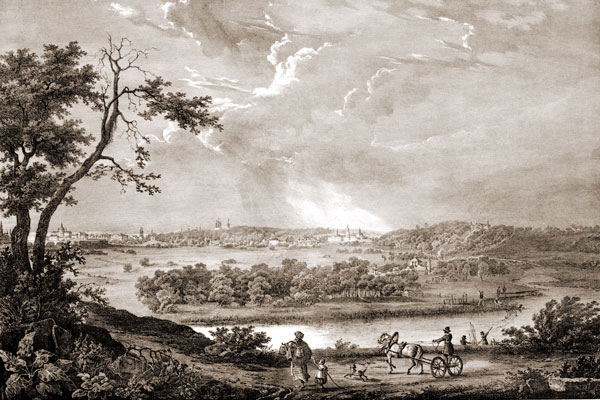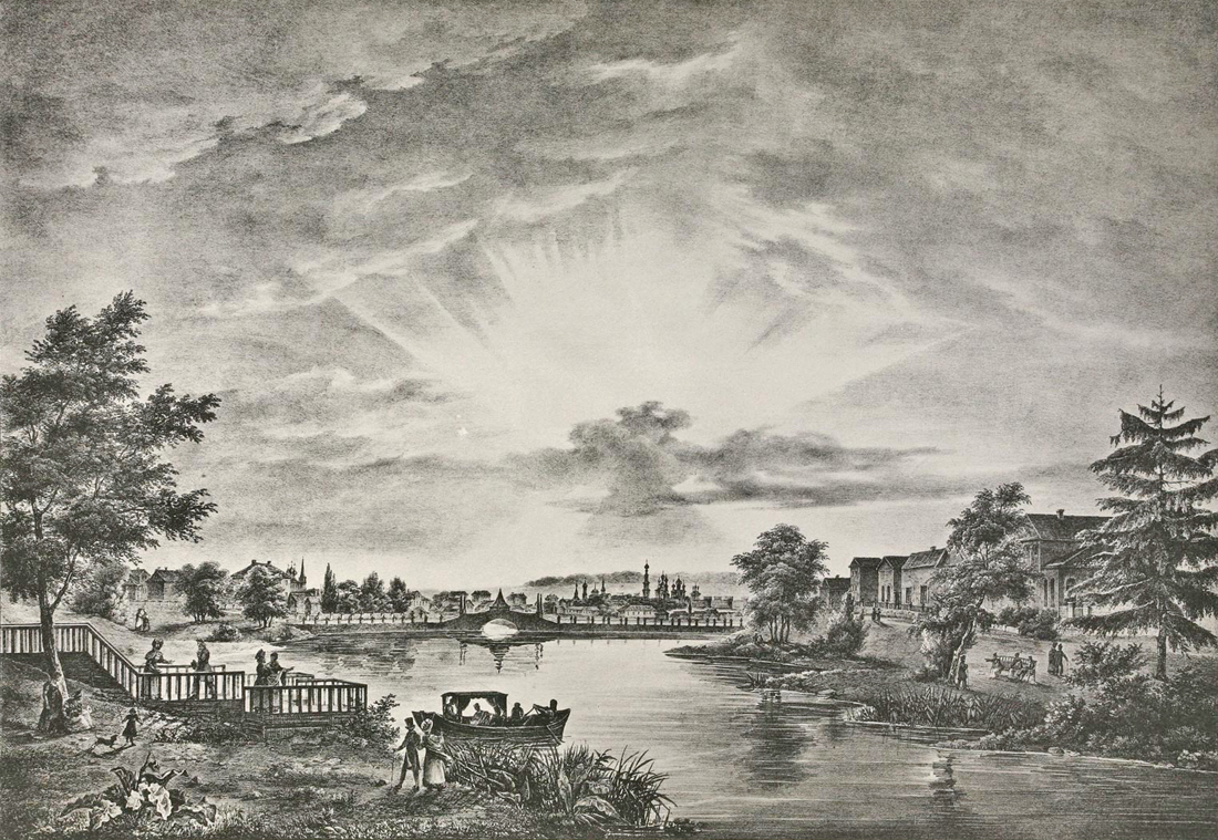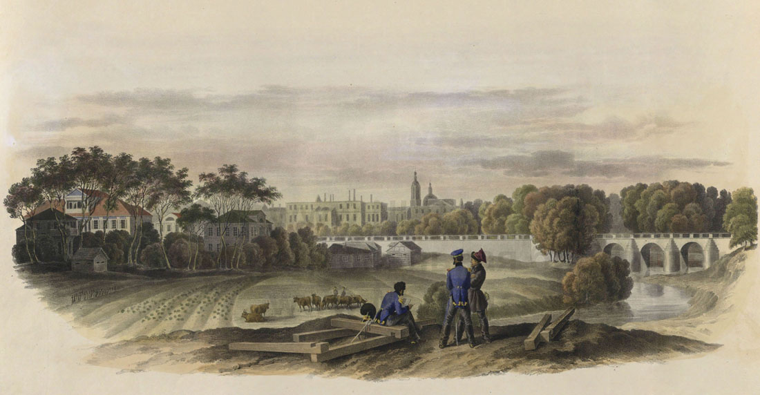 Вид Москвы с Воробьёвых гор. 1825 год. Литография по рисунку О. Кадоля