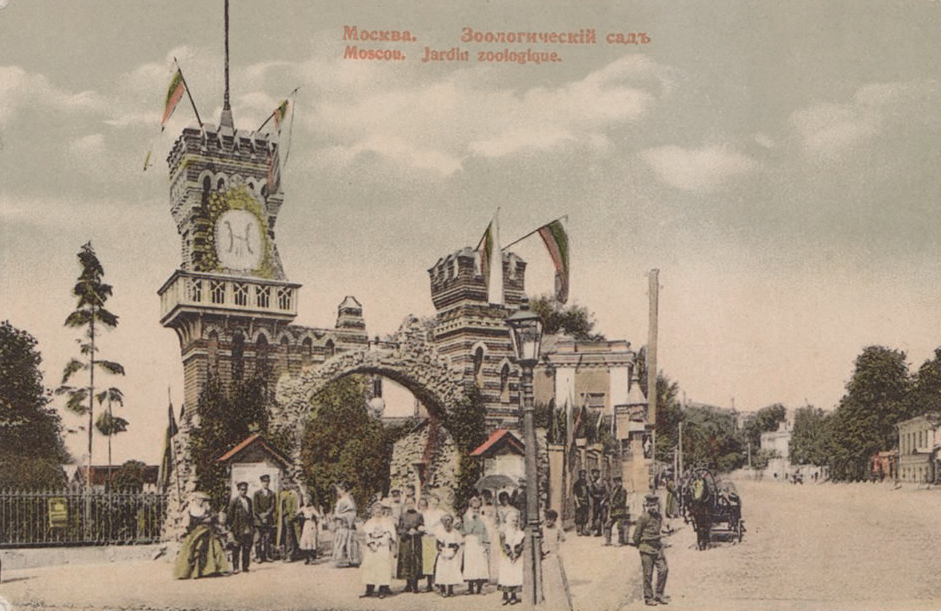 31 января 1864 года Русское Императорское общество акклиматизации животных и растений по инициативе профессора А.П. Богданова открыло на Пресненских прудах первый в стране Зоологический сад. В нем содержалось около 300 видов домашних и диких животных и птиц, в том числе 12 медведей, 5 волков, по два льва, тигра, дикобраза, кенгуру, носухи, по одному аллигатору и носорогу, 8 орлов, 23 попугая. Зоосад финансировался за счет государственных субсидий, пожертвований, частных взносов и реализации входных билетов на его территорию. Коллекция зоопарка пополнялась благодаря естественному приросту животных, приобретению новых, обмену и подаркам, поступавшим даже от царственных особ. Так, император Александр II пожаловал парку своего индийского слона, преподнесенного ему в дар бухарским эмиром, а также трех зубров и четырех косуль из Беловежской пущи. Великий князь Константин Николаевич Романов подарил носорога, египетский правитель Исмаил-Паша – зебру. Архитектор зоосада П.С. Кампиони доставил из Франции подаренных Парижским Обществом акклиматизации большое число экзотических животных, а Иван Бутаков, командир фрегата «Светлана», вернувшегося из кругосветного плавания, привез целую коллекцию зверей из Австралии. Зоосад стал очень популярным местом среди москвичей и многочисленных приезжих, первые три года буквально осаждавших его кассы.